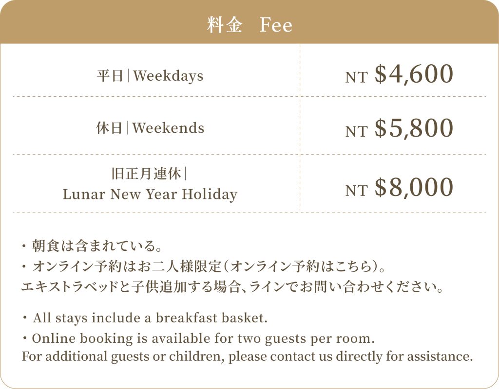 ・宿泊説明をよくお読みください。(オンライン予約はこちら)