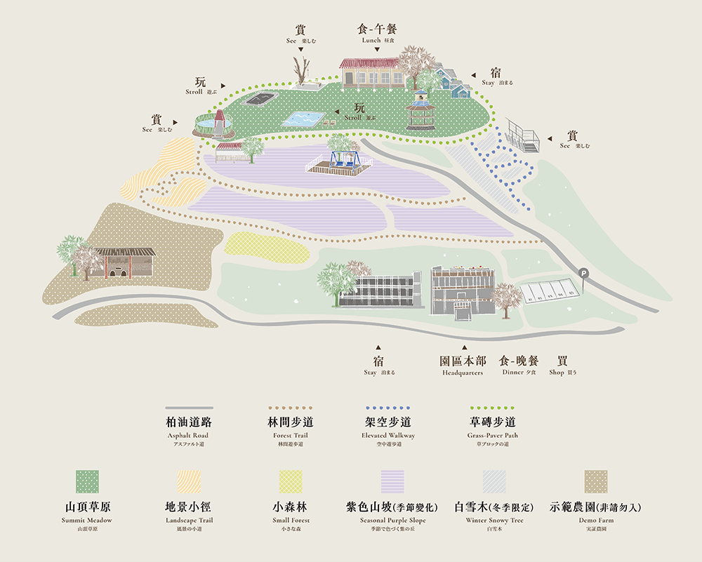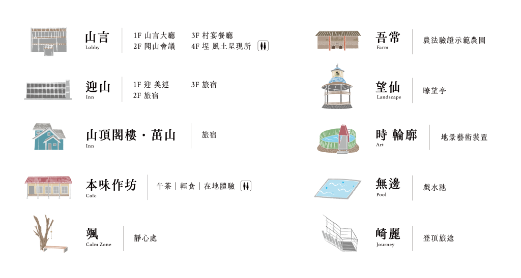 仙湖農場から与える「食べる・泊まる・遊ぶ・買う・眺める」の意味により、台湾特有の風土・風味・風格を感じる。