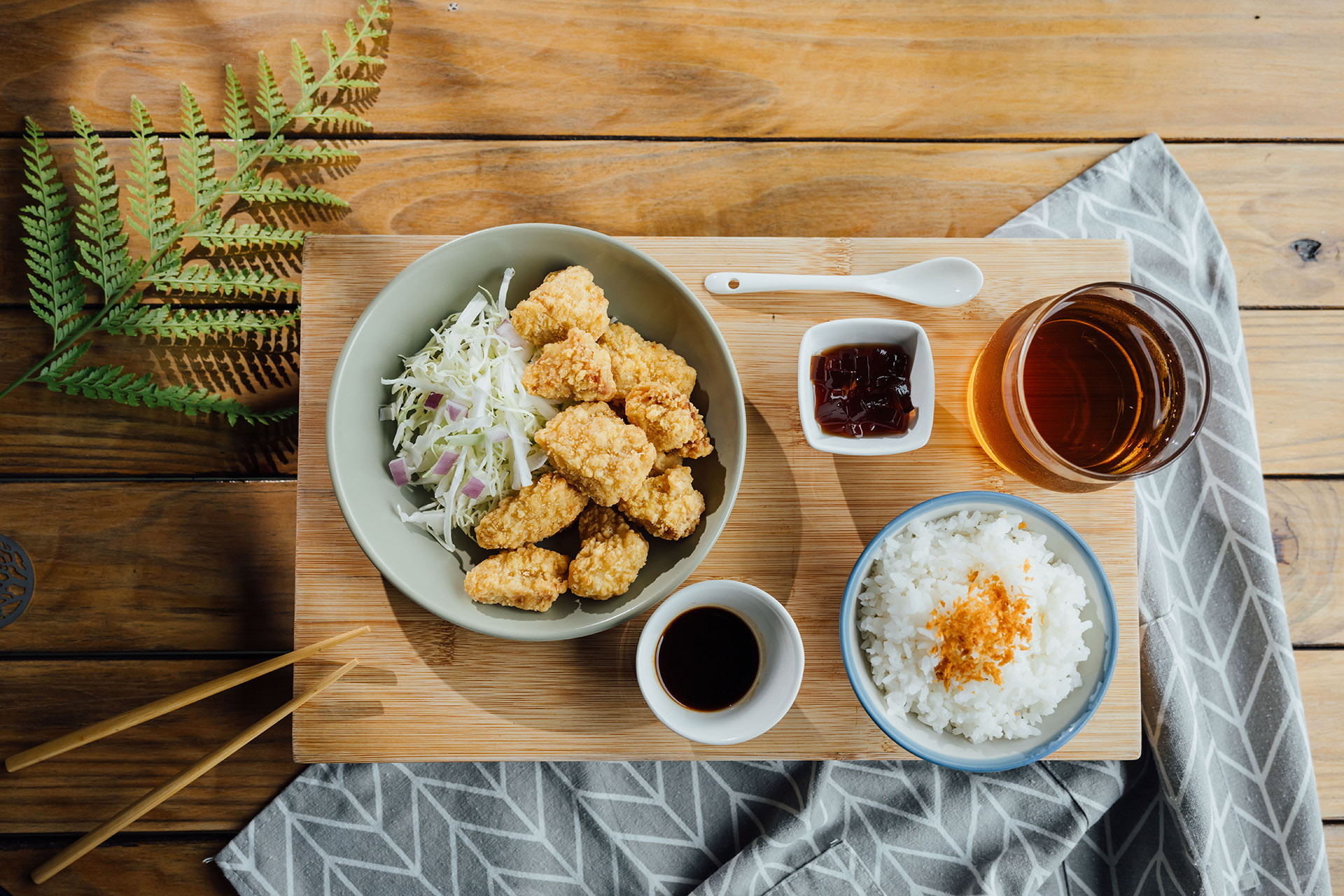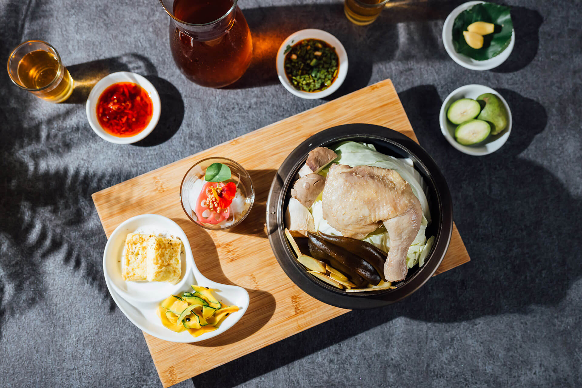 豚肉の煮込みと焼き魚・チキンスープ・野菜により、何百年にわたる地元の飲食文化の伝承を伝える。